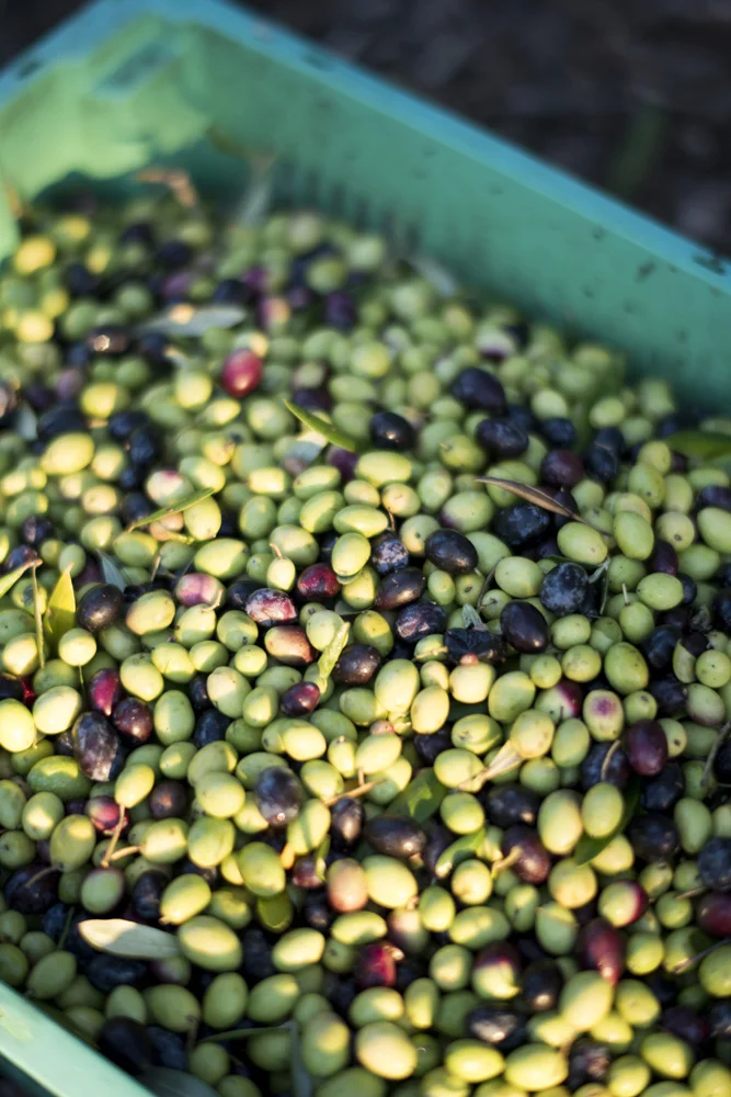 Warm Springs Farm olives are harvested at the optimal time by hand. The orchards are carefully watched for several weeks taking the into close consideration: temperature, rain fall, frost and pests. The fruit is at its peak of ripeness when it is soft and easily pressed between fingers producing juice that feels oily not watery and when the inside of the olive has turned pink - then it is ready to harvest.