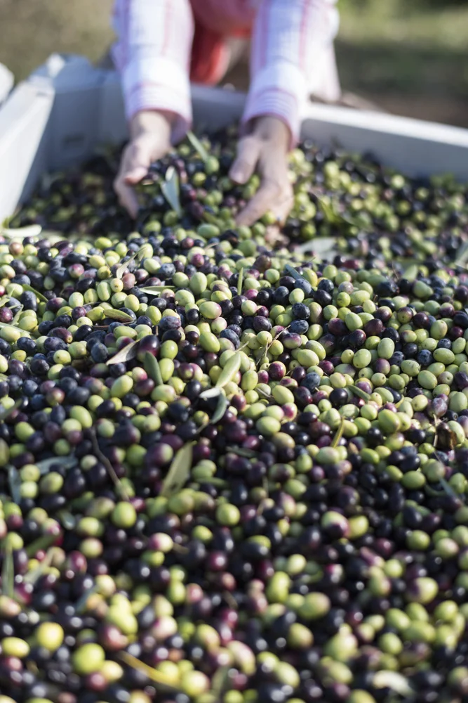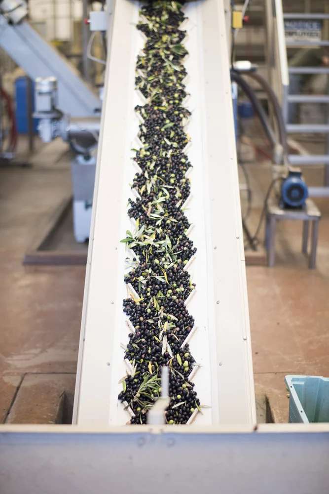 - Then the olives are ground into paste using a blade-milled method. The paste is then mixed / cold pressed and this step allows the small oil droplets to combine into larger ones.