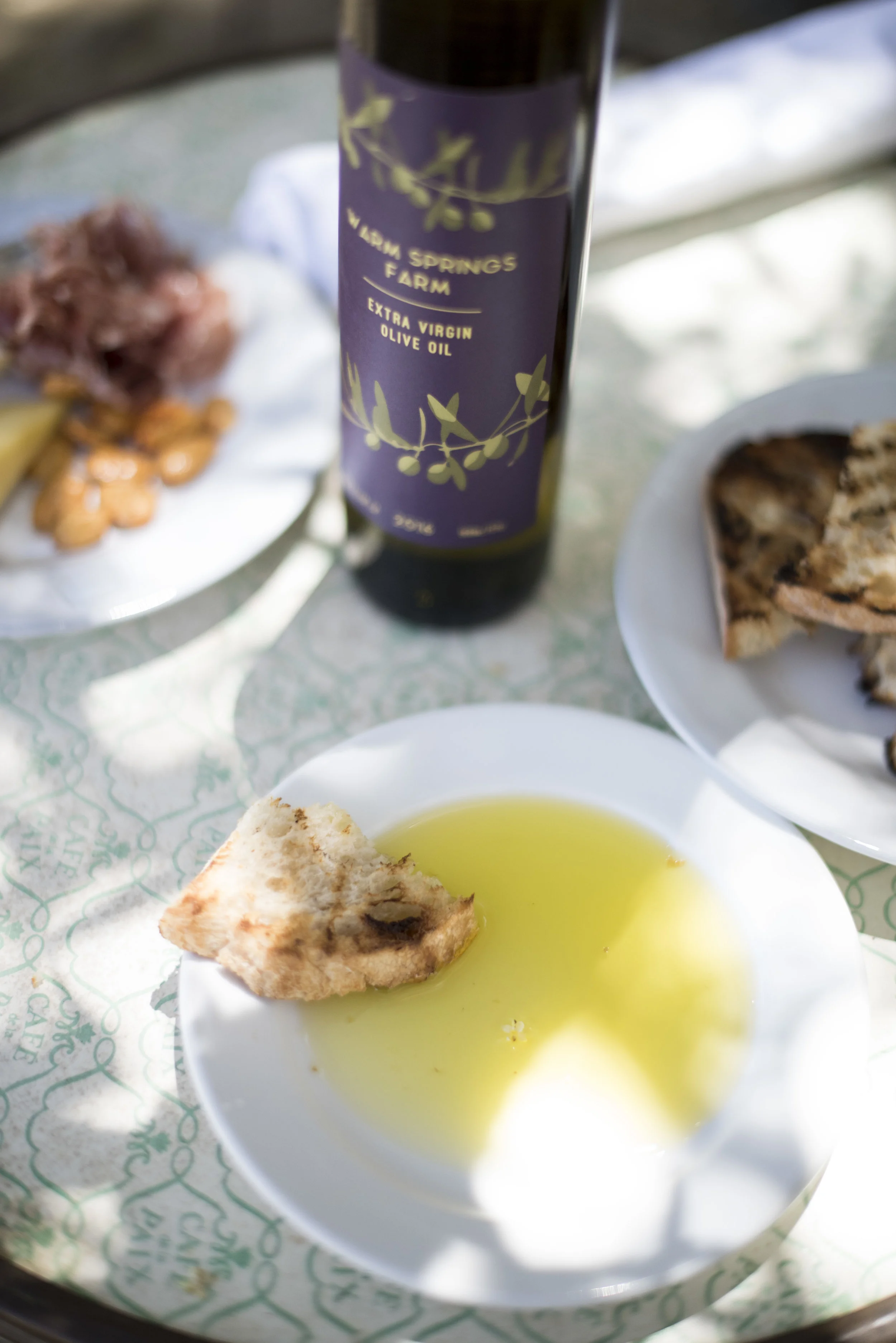 The flavor of Warm Springs Olive Oil is a blend of a unique olive mix: Coratina, Frantoio, Leccino, Maurino and Pendolino. These types of olives create a combination of flavors, complemented by their terroir, such as green fruit, like young apples and nuts, tall grass, citrus, and tomatoes. Additionally the property’s soil is very healthy and does not contain very much clay, which makes ideal for growing olive trees.